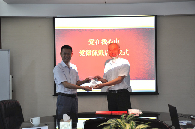 黨委書記、董事長王維星同志為東華總部一支部頒發(fā)黨徽