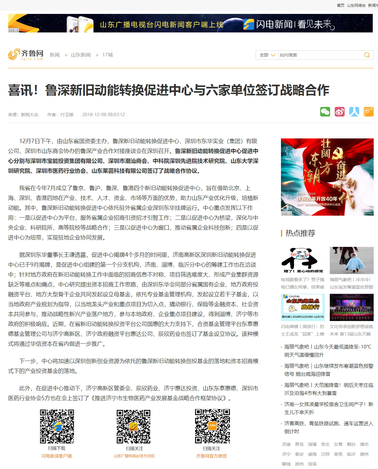 齊魯網(wǎng):喜訊!魯深新舊動能轉(zhuǎn)換促進中心與六家單位簽訂戰(zhàn)略合作