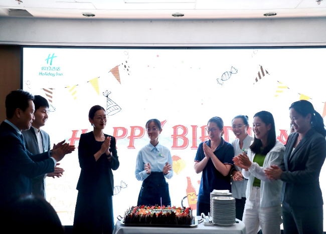 會后,酒店管理層與全體員工共同為7、8月生日的員工舉行慶祝儀式,給壽星們送上最美好的祝福,生日會現(xiàn)場氣氛活躍,大家其樂融融,員工們紛紛表示真切地感受到了家的溫度。