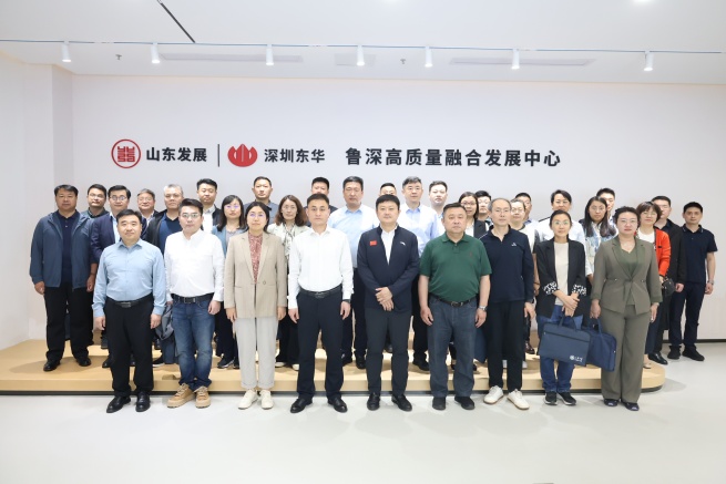 在山東發(fā)展•魯深高質(zhì)量融合發(fā)展中心, 考察團(tuán)一行詳細(xì)了解了深圳東華的發(fā)展歷程以及在“雙招雙引”工作中取得的顯著成果。焦霄黎表示,深圳東華作為山東省駐深“窗口”企業(yè),在促進(jìn)山東省與粵港澳大灣區(qū)經(jīng)濟(jì)交流與合作中發(fā)揮著重要的橋梁紐帶作用。天橋區(qū)作為黃河兩岸的重要樞紐,生態(tài)環(huán)境優(yōu)美,工商業(yè)基礎(chǔ)雄厚,各類資源富集,發(fā)展空間廣闊,通過精準(zhǔn)的產(chǎn)業(yè)規(guī)劃布局,形成完善的產(chǎn)業(yè)鏈條,為企業(yè)提供良好的產(chǎn)業(yè)生態(tài)和協(xié)同發(fā)展機(jī)遇。希望深圳東華繼續(xù)秉持“走在前、挑大梁”使命擔(dān)當(dāng),立足深圳改革開放前沿陣地,持續(xù)整合創(chuàng)新鏈、產(chǎn)業(yè)鏈、人才連、資本鏈優(yōu)質(zhì)資源,與天橋區(qū)在產(chǎn)業(yè)協(xié)同、人才交流、科技創(chuàng)新等方面加強(qiáng)合作,推動企業(yè)、人才、項(xiàng)目、資金落戶天橋區(qū),為天橋區(qū)經(jīng)濟(jì)高質(zhì)量發(fā)展注入強(qiáng)大動力。
