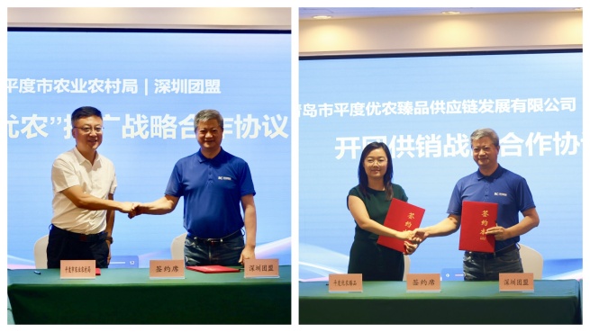 現(xiàn)場(chǎng)還舉行了雙邊戰(zhàn)略合作協(xié)議簽署儀式,平度市農(nóng)業(yè)農(nóng)村局與深圳團(tuán)盟簽訂“平度優(yōu)農(nóng)”產(chǎn)品推廣戰(zhàn)略合作協(xié)議,深圳團(tuán)盟與平度優(yōu)農(nóng)臻品供應(yīng)鏈公司簽訂開(kāi)團(tuán)供銷(xiāo)戰(zhàn)略合作協(xié)議,確立了從產(chǎn)地直供到終端銷(xiāo)售的全鏈條合作模式。